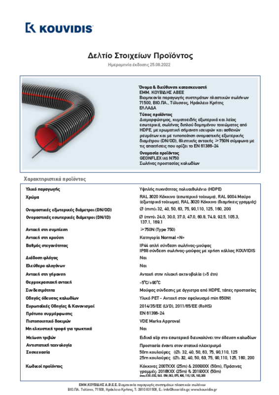 18/09/2019 Δελτίο στοιχείων προϊόντος άκαμπτου σωλήνα GEOSUB TIP Rezultatele testelor FILE . SIZE DESCĂRCARE (RO) DESCĂRCARE (EL)DESCĂRCARE (EN)